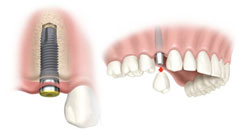 Таким образом зубной имплантат, состоящий из этих трех частей, становится копией потерянного зуба. Процедура установки имплантата весьма проста. Для начала необходимо сделать рентгеновский снимок челюсти, чтобы установить, имеется ли достаточно костной массы. Если нет, то до имплантирования необходимо произвести операцию по наращиванию костной массы. Сама установка имплантата занимает около 30 минут. После окончания операции необходимо 2-3 месяца, чтобы имплантат прижился. Только после успешного приживления имплантата пациент снова приходит в клинику, где на имплантат устанавливается абатмент и изготавливается протез (коронка).