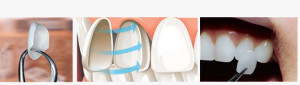 Bevels can be ceramic or composite, they are like thin plates of wishing shape and tooth color, and they are mostly put on front teeth.