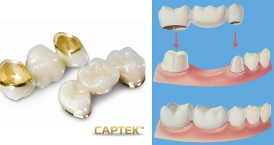 Bridges– link broken tooth lines into one whole. The bridge frame make two or more crowns or built-in implants.